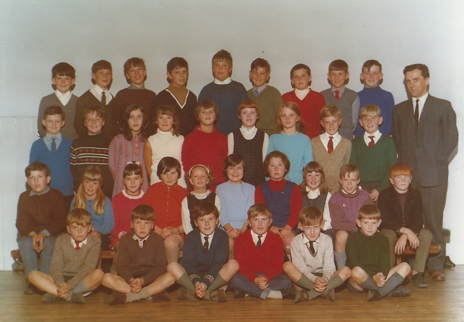 Teacher was Mr Gibson, and classes were P5/P6/P7. Back row: Jamie Rae, Alan Sneddon, Brian Johnstone, Duncan Lamont, Adam Pringle, Alan Richardson, Alan Gordon, Ian Dickson, Stuart Beattie. 2nd Row: James McCleary, Jimmy Hunter, Susan Wright, Carol Halliday, Kathleen Steel, Sheila Vernon, Susan Graham, John Glendenning, Alan Glendenning. 3rd row: John Johnstone, ?, Linda Kirkpatrick, Sadie Thompson, Karen Dunnigan, Helen Miller, Sheila May Halliday, Mary Rae, Andrew Gregory, Peter Graham, Front Row, Ian Glendinning, John Halliday, Andrew Johnstone, Raymond Currie, Stuart Johnstone, David Lockhart